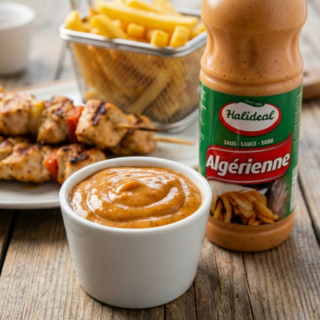 Algerijnse saus is een romige saus met een pittige smaak, die vaak als bijgerecht wordt gebruikt. Ze staat bekend om haar evenwicht tussen zachtheid en een lichte scherpte, waardoor ze gemakkelijk te combineren is met veel gerechten.