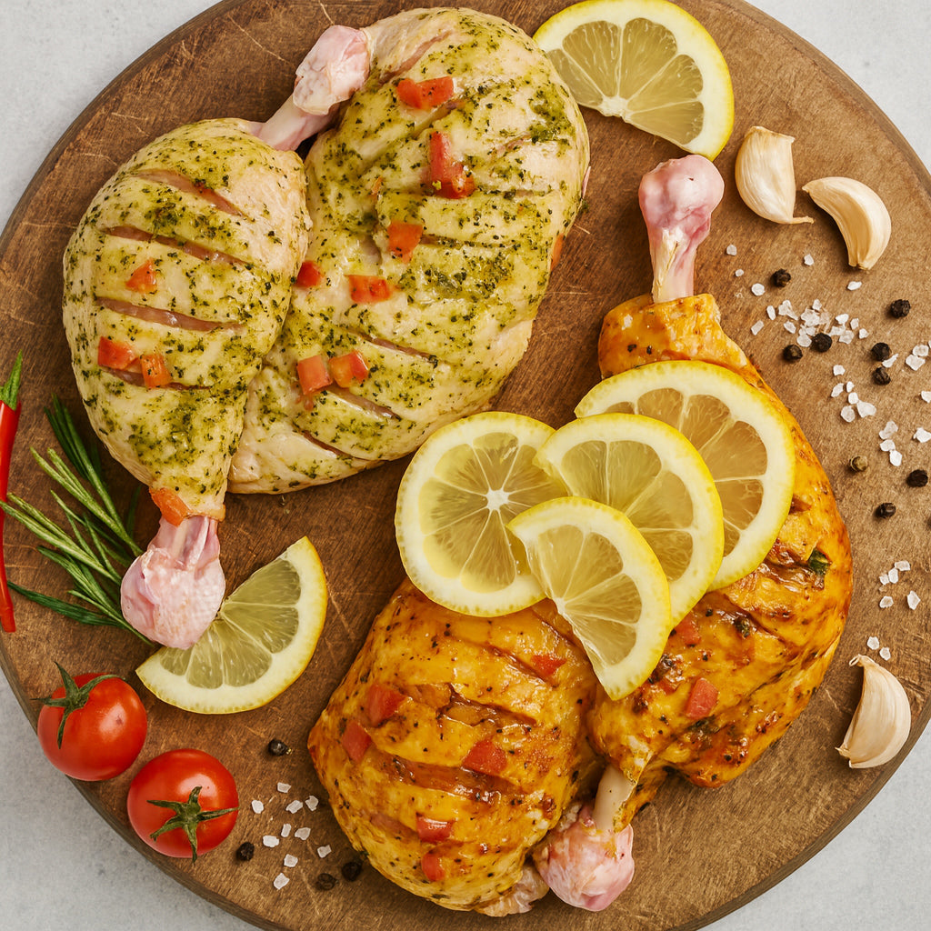 De gemarineerde kippenbout is een kippenbout die vooraf op smaak is gebracht met een marinade om de smaak te versterken. Deze bereiding zorgt voor een meer aromatisch stuk vlees na het koken.