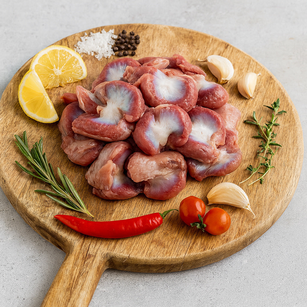 Kippenmaagjes zijn orgaanvlees afkomstig uit het spijsverteringsstelsel van gevogelte. Ze zijn herkenbaar aan hun stevige textuur en uitgesproken smaak, waardoor ze zeer geliefd zijn in traditionele en familierecepten. Goed bereid bieden ze een unieke smaakbeleving.