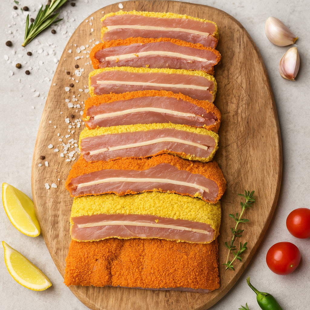 Le Cordon Bleu est une préparation panée composée d’une escalope garnie d’une farce fondante, puis enrobée de chapelure. Il est connu pour son contraste entre l’extérieur croustillant et l’intérieur moelleux, ce qui en fait un plat très populaire.