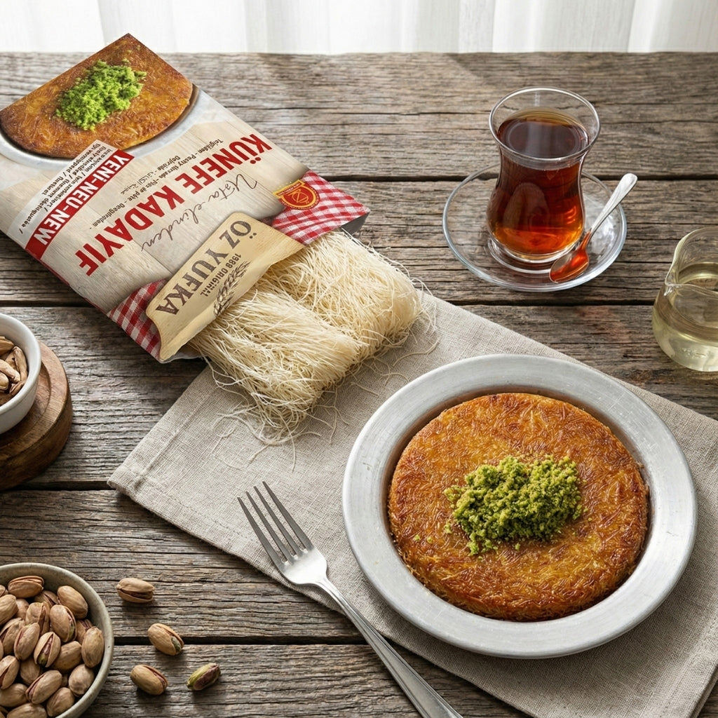 Les cheveux de kadayif Öz Yufka sont appréciés pour leur finesse constante et leur qualité fiable. Ils permettent de réussir facilement des desserts traditionnels comme le künefe, avec un rendu croustillant, fondant et fidèle aux recettes authentiques.